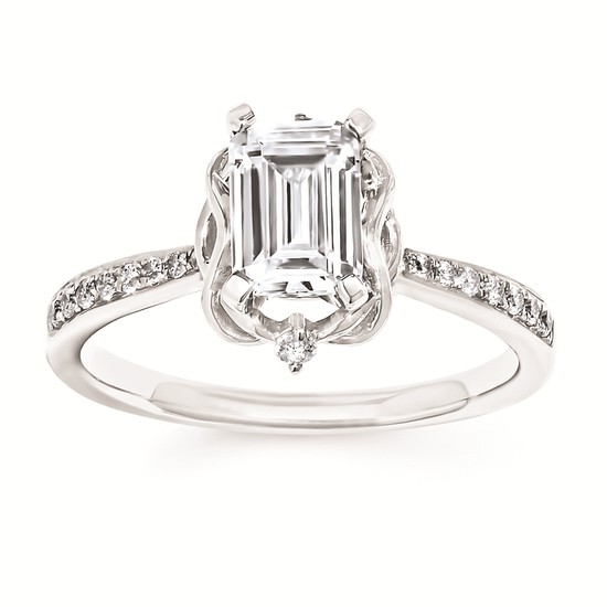 Engagement Ring Forever ElegantĀ® 1/8 Ctw. Diamond Semi Mount shown with 1 Ct. Emerald Cut Center Diamond in 14K Gold