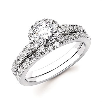 Engagement Ring Halo Bridal: 3/8 Ctw. Diamond Halo Semi Mount available for 3/4 Ct. Round Center Diamond in 14K Gold