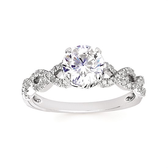 Engagement Ring Halo Bridal: 1/4 Ctw. Diamond Semi Mount shown with 1 Ct. Round Center Diamond in 14K Gold