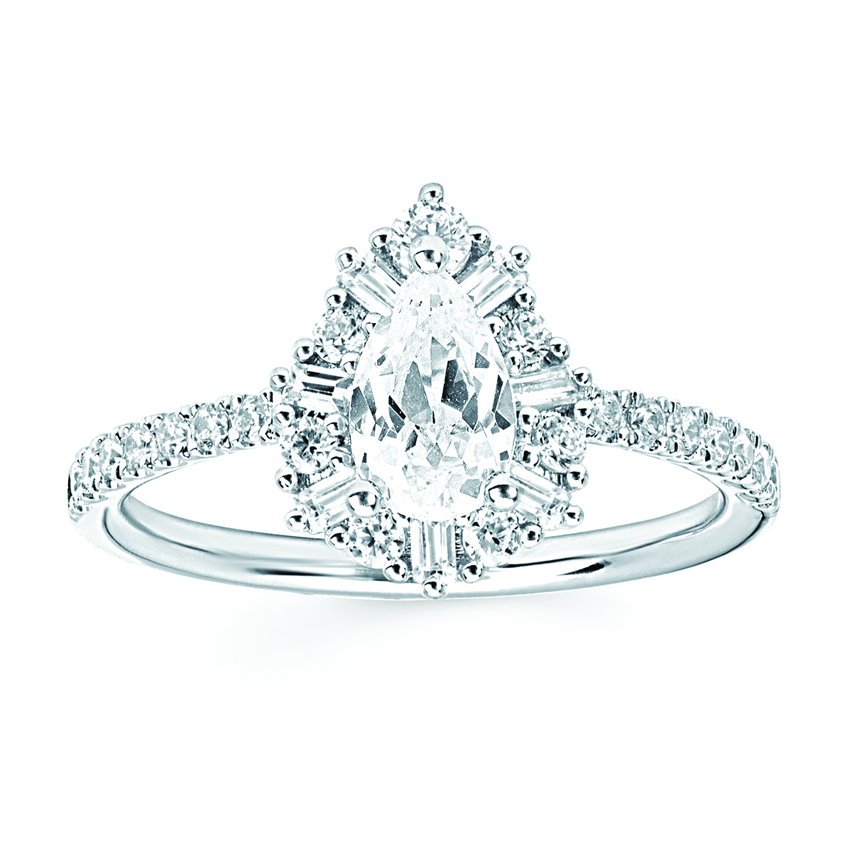 Engagement Ring Halo Bridal: 1/2 Ctw. Diamond Semi Mount shown with 1/2 Ct. Pear Center Diamond in 14K Gold