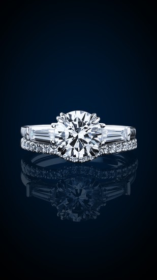 Engagement Ring Classic Bridal: 1/3 Ctw. Diamond Semi Mount shown with 2. Ct. Round Center Diamond in 14K Gold