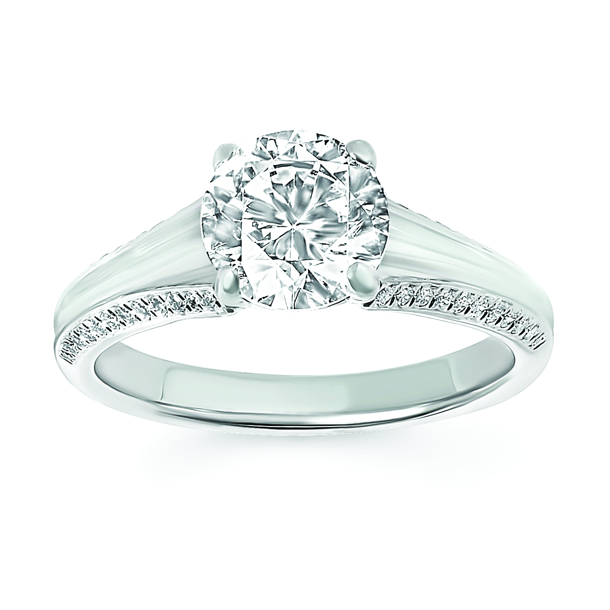 Engagement Ring Modern Bridal: 1/6 Ctw. Diamond Semi Mount shown with 1 1/2 Ct. Round Center Diamond in 14K Gold