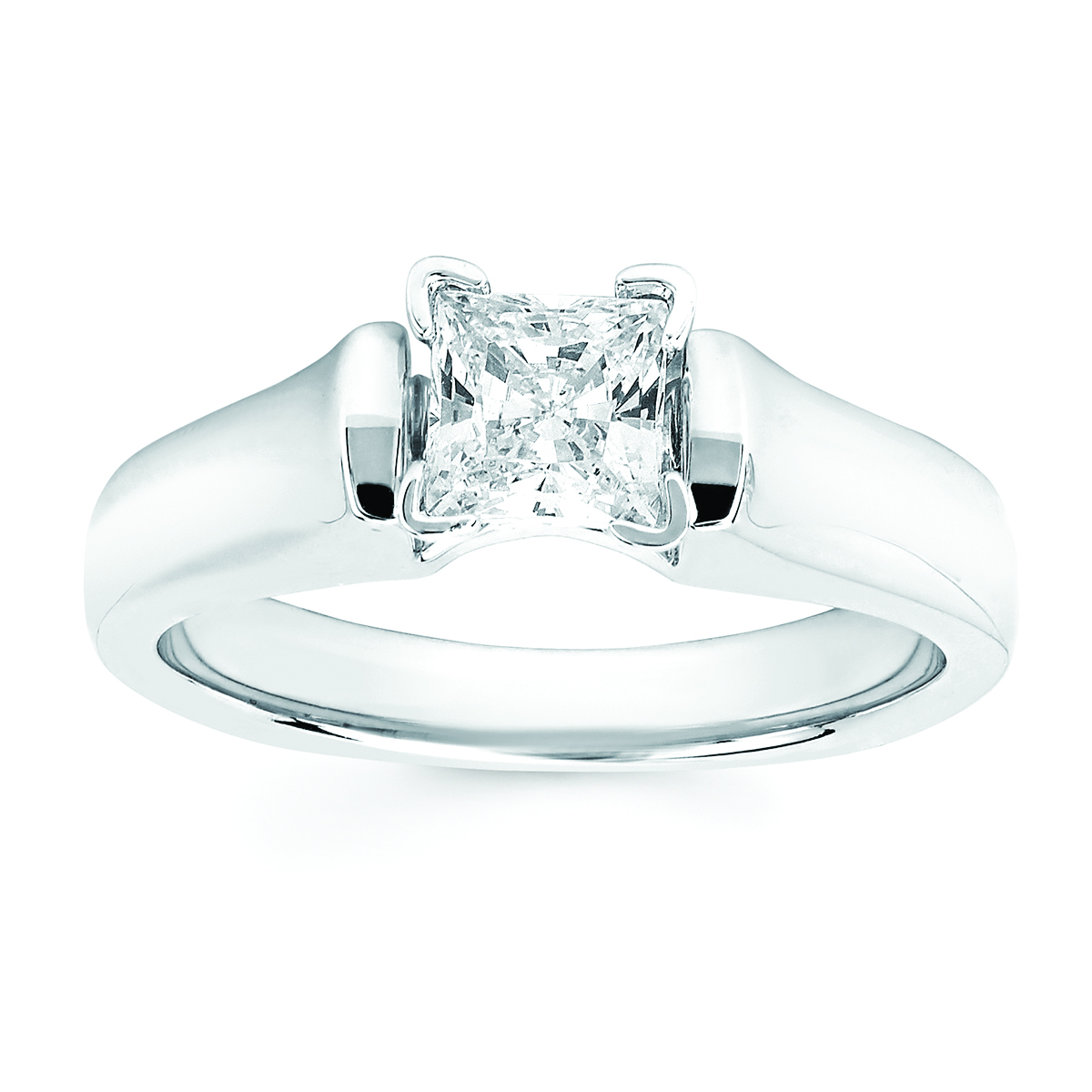 Engagement Ring Classic Bridal: Diamond Ring shown with 3/4 Ct. Princess Cut Center Diamond in 14K Gold